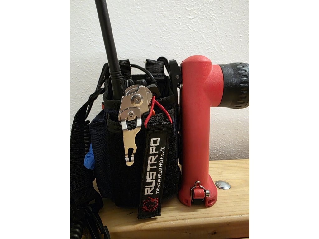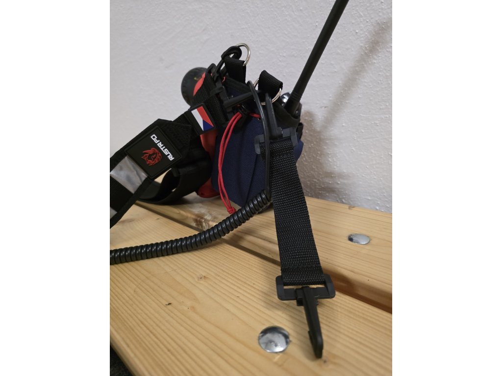 Na popruhu jsou poutka, na které lze připevnit mikrofon, svítilnu, karabinu apod.