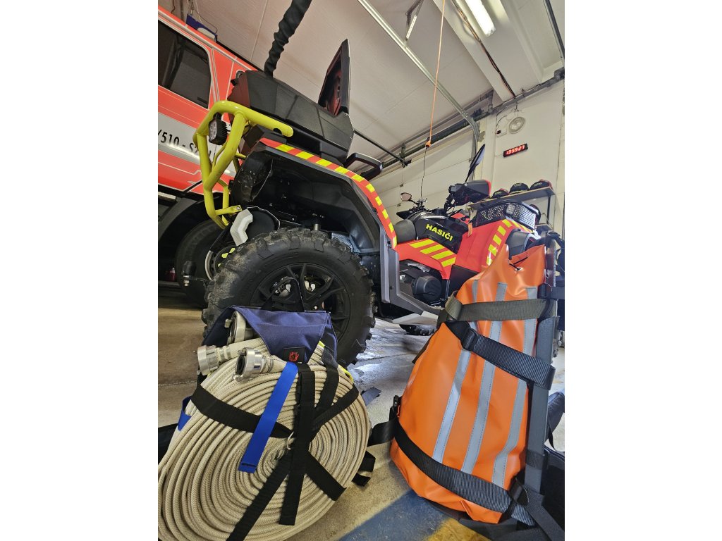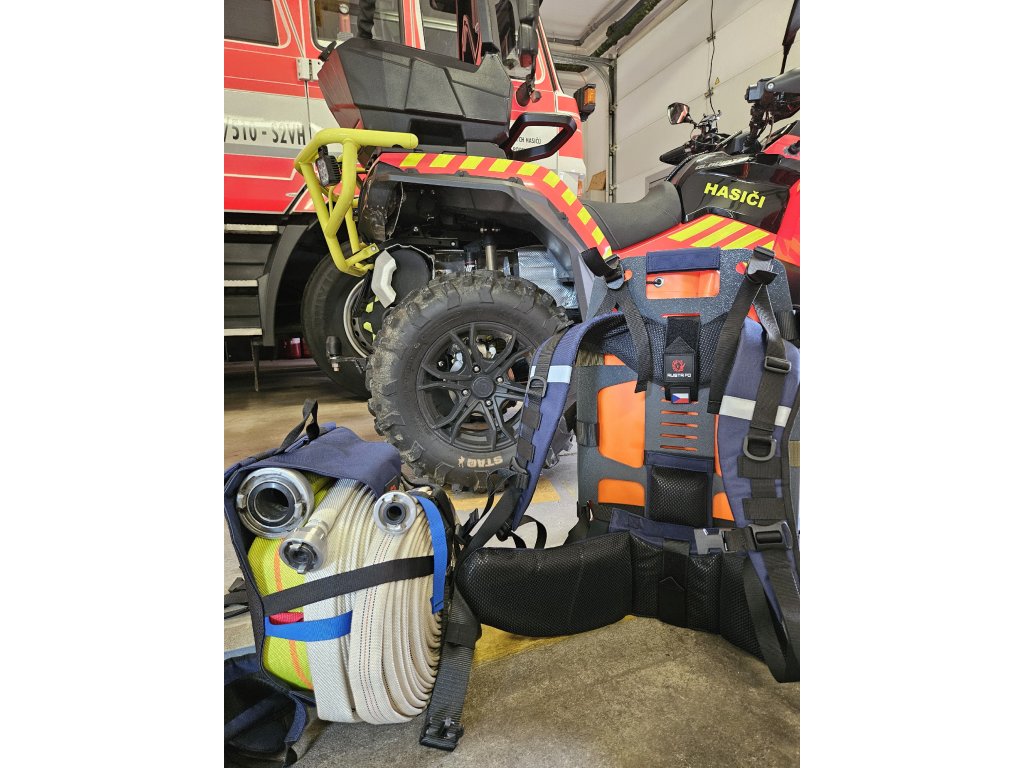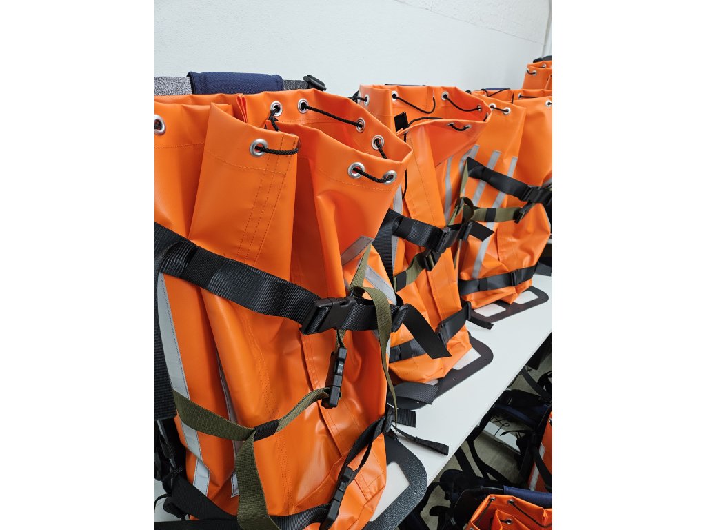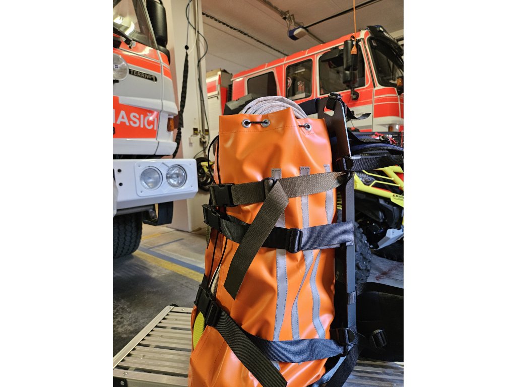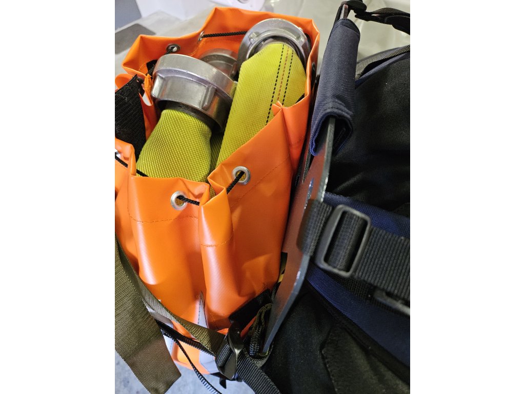 Oranžový vak je určený pro přenos hadic, proudnic, rozdělovače, ale také balené vody apod. Po jeho sundání se k tělu batohu dá přichytit např. čerpadlo pomocí popruhů.