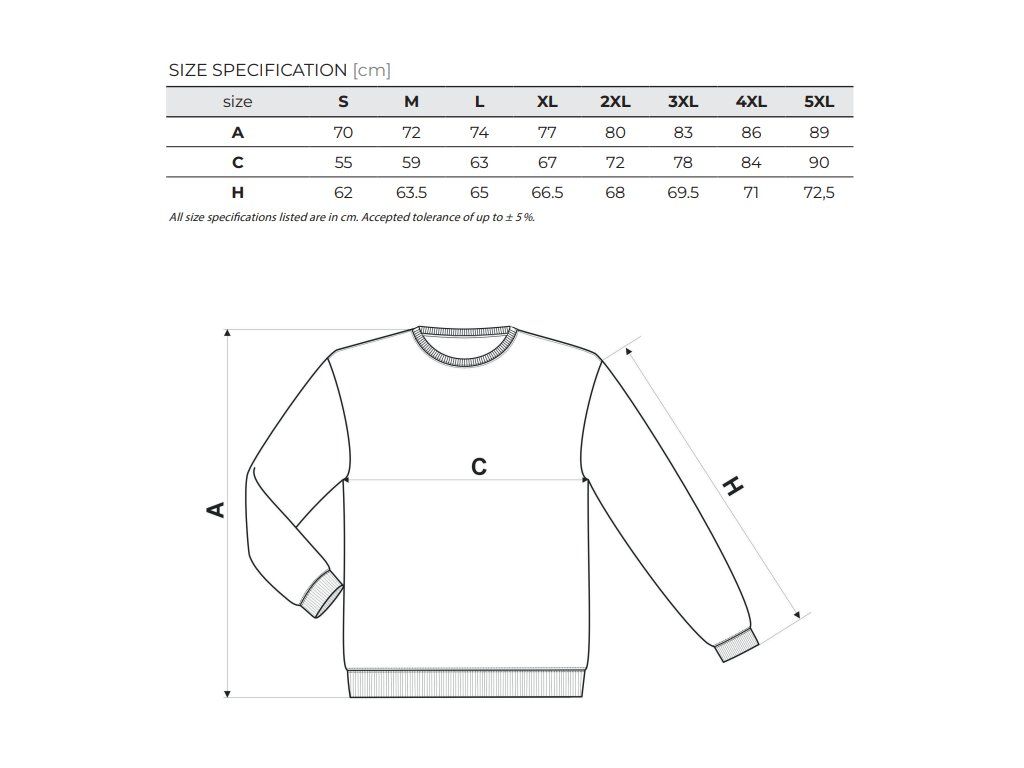 Mikina bez kapuce unisex , 60% bavlna a 40% polyester, gramáž 280 g/m²