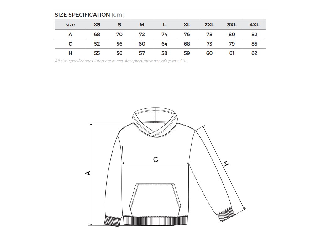 Mikina je vyrobená ze 75% bavlny a 25% polyesteru.